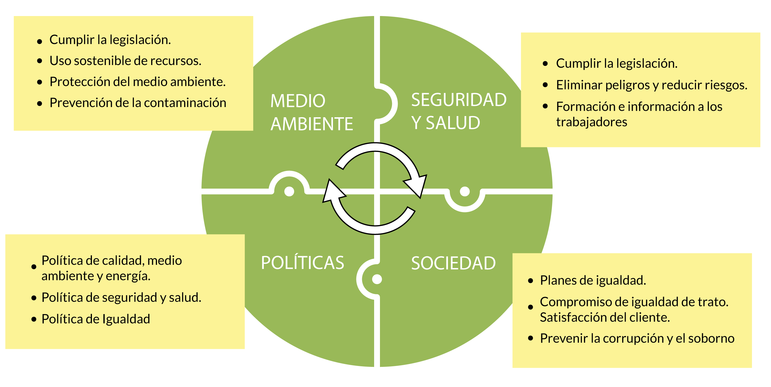 La Organización establece estos principios de gestión sostenible alineados con la Política Integrada de Gestión Empresarial que permiten logar la mejora continua y la excelencia empresarial involucrando a toda la sociedad y a nosotros mismos, fortaleciendo nuestra posición al implementar alternativas respetuosas con el medio ambiente y la sostenibilidad.